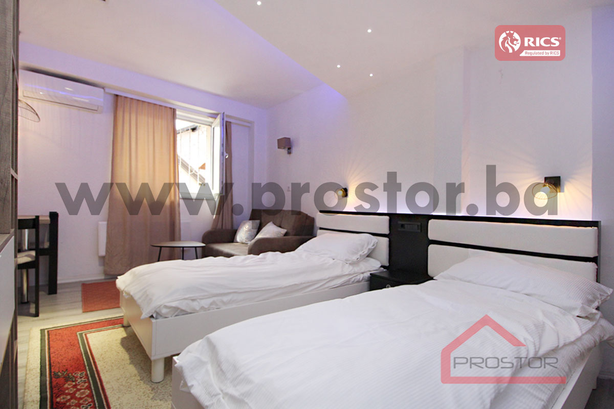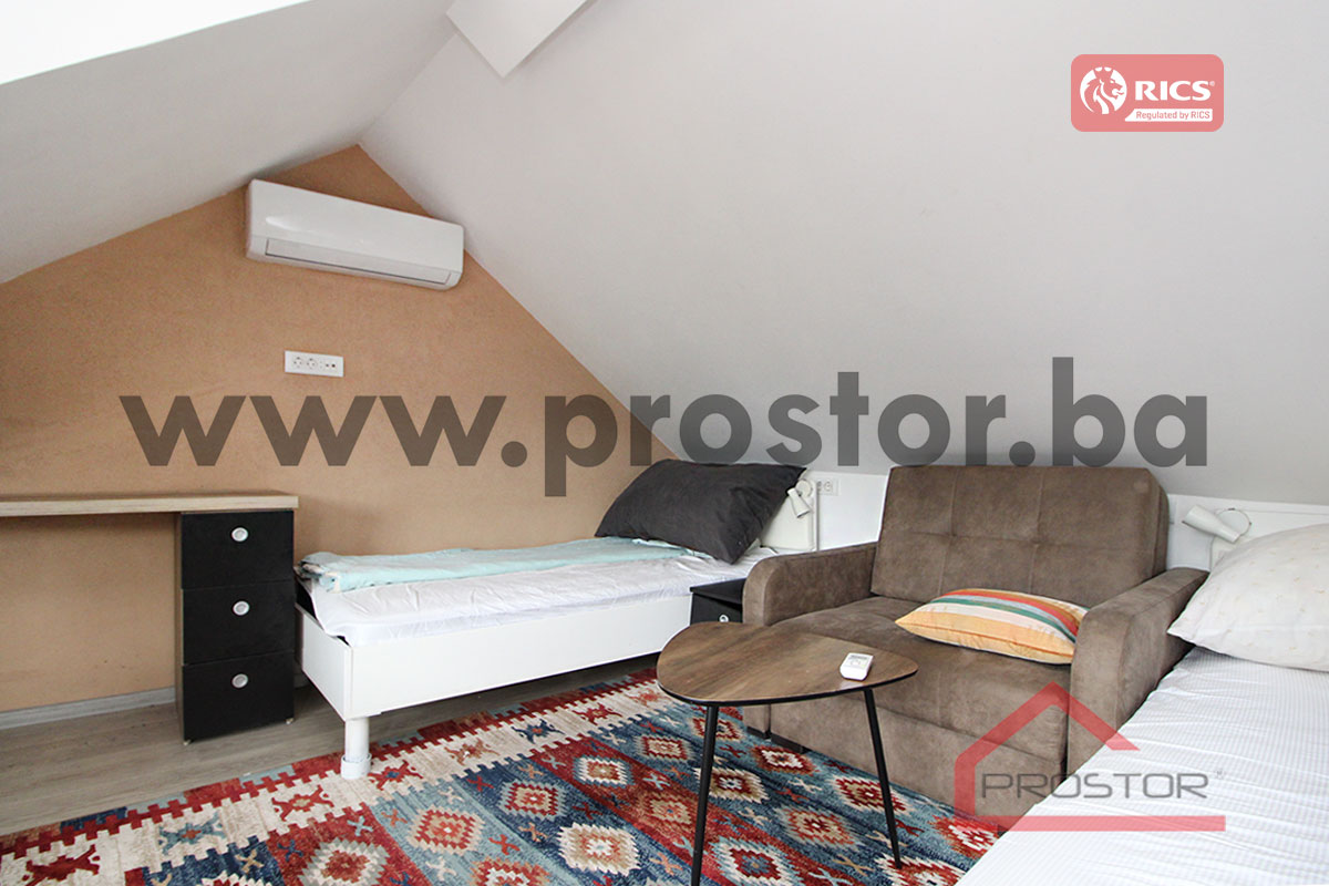 Bitno je istaknuti da je objekat osim što je pogodan za stanovanje također idealan da se iznajmi u poslovne namjene za kratkoročni najam. Kuća je trenutno podijeljena na 3 etaže i opremljena, te koncipirana kao 3 zasebna apartmana od kojih svaki ima jednu prostoriju, malu kuhinju i kupatilo.