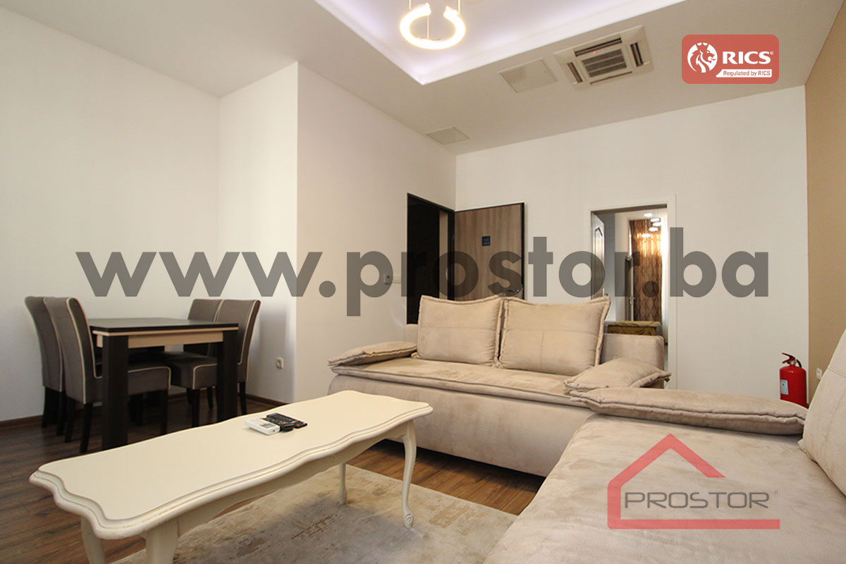 Iznajmljuje se kompletno renoviran trosoban stan površine 128m2 na prvom spratu stambene zgrade na centralnoj lokaciji u ulici Kulovića a pored centralne banke. Nalazi se na izuzetnoj lokaciji gdje je budućim zakupcima na dohvat ruke kompletna ponuda sadržaja.