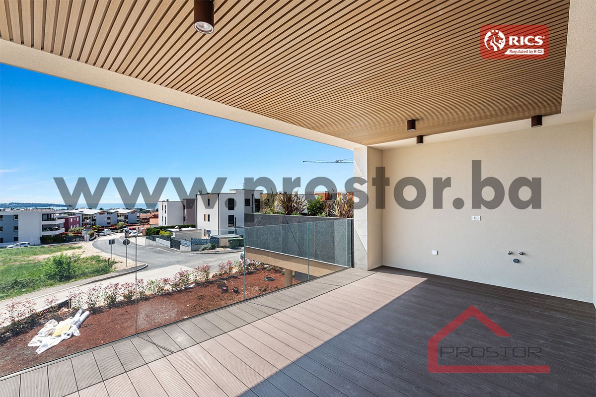 Apartman koji je predmet prodaje nalazi se na prvom spratu, dvostrane je orjentacije te se dispozitivno sastoji od dnevnog boravka s kuhinjom i trpezarijom, dvije komforne spavaće sobe (od kojih je jedna master spavaća soba sa vlastitim kupatilom i garderoberom) kupatila, ostave, hodnika te velike terase s koje se pruža otvoren pogled prema moru.
