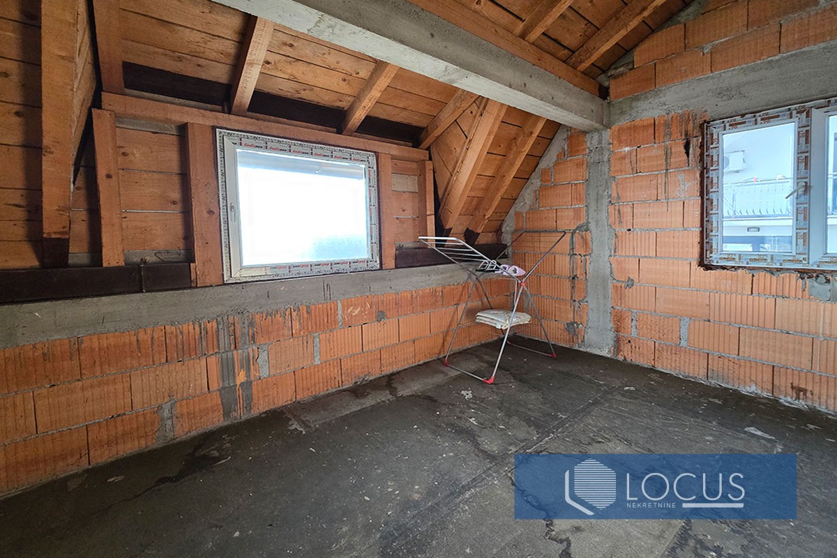 Potkrovlje: Dnevni boravak sa kuhinjom i trpezarijom, spavaća soba, kupatilo, hodnik i balkon