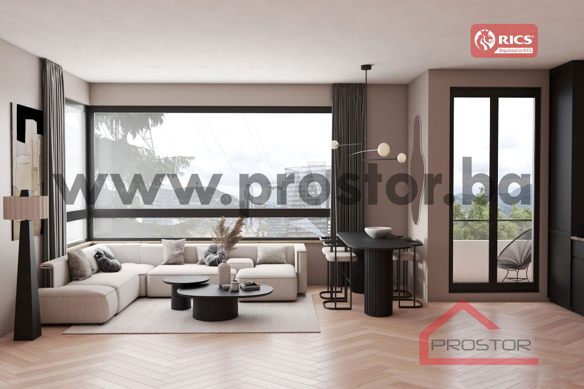 Sa zadovoljstvom izdvajamo jedinstven četverosoban stan ukupne površine 64,41m2, smješten na trećoj etaži savremenog stambenog objekta u izgradnji, na izuzetno atraktivnoj lokaciji u Sarajevu – Skenderiji.