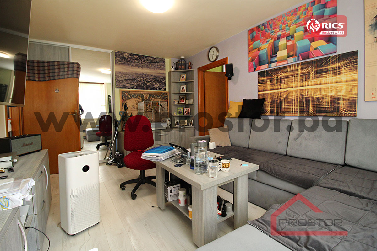 Stan se sastoji od dnevnog boravka, spavaće sobe, kuhinje u kombinaciji sa trpezarijom, kupatila i predsoblja.